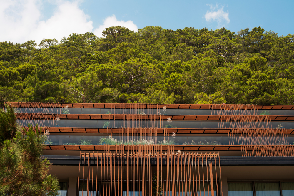 Max Royal Kemer Resort, doğayla uyumlu mimarisiyle dikkat çeker. Lunawood 26×92 SHP Güneş Kırıcı, 42×42 SHP ve 42×68 SHP Karkas kullanılarak, yapıların estetik görünümü ve enerji verimliliği optimize edilmiştir. Bu ürünler, sıcak Akdeniz iklimine uygun olarak seçilmiş ve tesisin çevresindeki manzaraya uyum sağlamak adına kullanılmıştır.